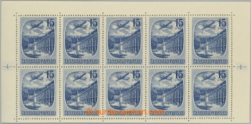 Philately. Pof.PL L35, Spa 15Kcs blue, blk-of-10 from plate A; mint never hinged, several usual minor gum fault, lower cut margin, overall fine