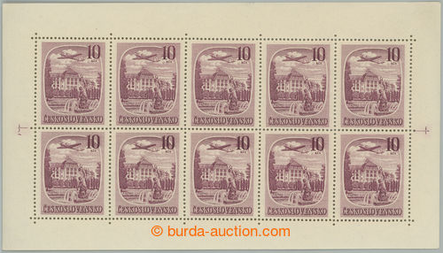 Philately. Pof.PL L34, Spa 10Kcs purple-red, blk-of-10 from plate A1; mint never hinged, several usual production minor gum fault, otherwise very nice quality (Image) (Image2)