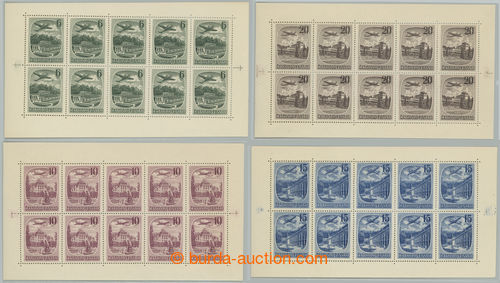 Philately. Pof.PL L33-L36, Spa 6Kcs - 20Kcs, complete set blk-of-10, 15Kcs plate B, 20Kcs inverted perf ramec; overall very fine, sought!