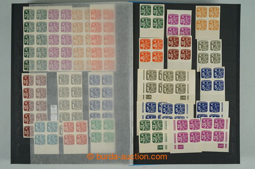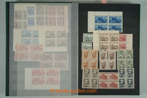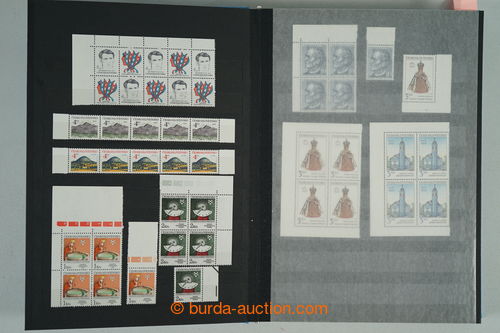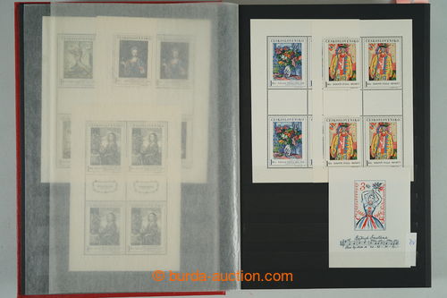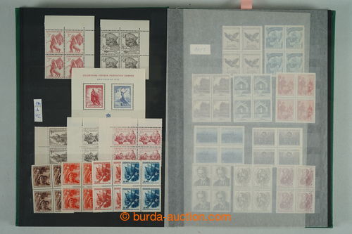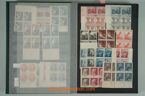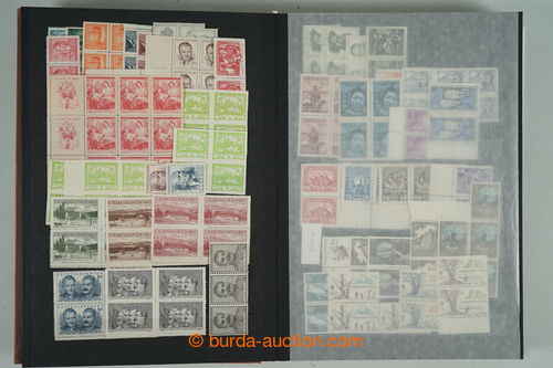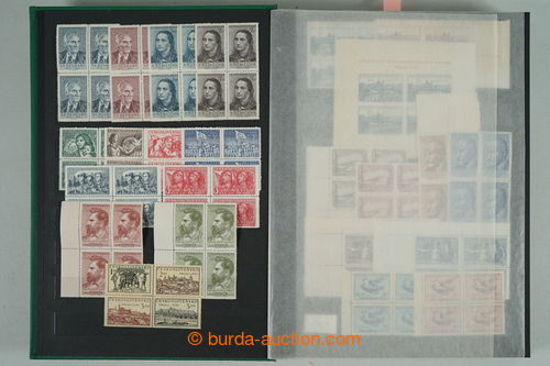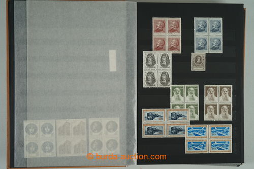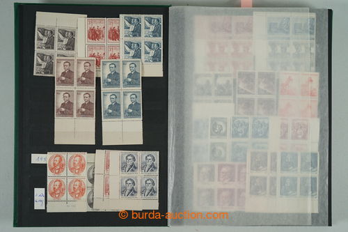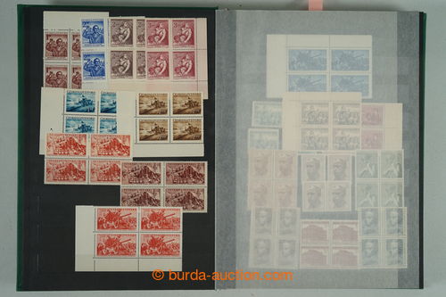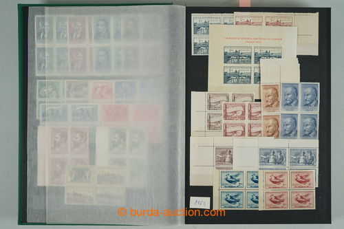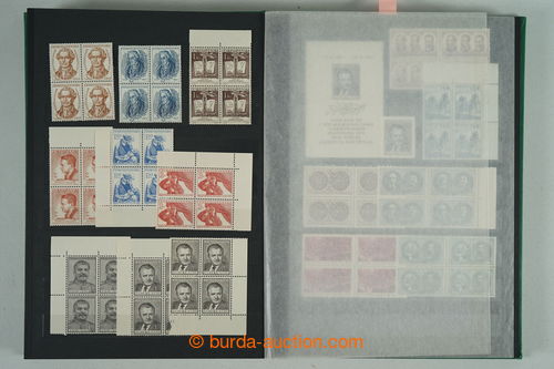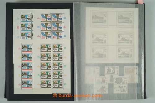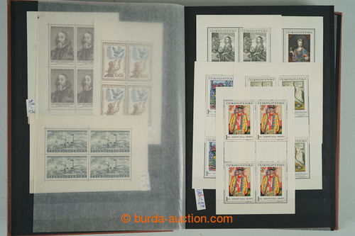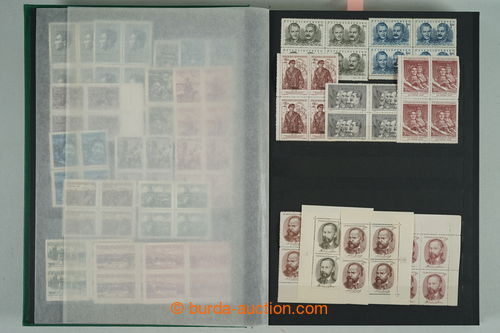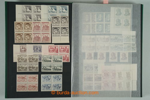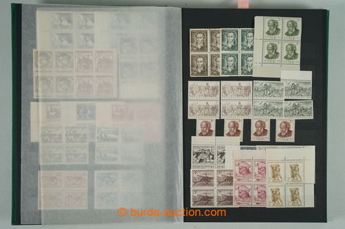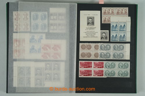 Philately. [COLLECTIONS] GENERAL / collection in/at 25 various stockbooks A4, especially 50. years also in blocks of four, i.a. coupons, souvenir sheets (for example. Bratislava 1952, PRAGA 1962 - Pradlo), much PB (for example. 2x