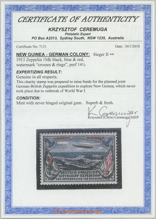 Philately. ZEPPELIN / Zeppelin stamp Sieger II. / Zeppelin 1RM, semi-official issue; very fine, with certificate Ceremuga, scarce stamp!