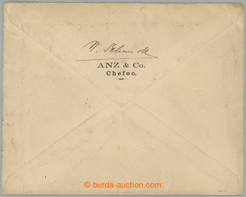 Philately. commercial Reg letter sent from Tschifu to Germany, franked with 4 overprint issue 1898 stamps, Mi.2, 3, 4, 5, CDS TSCHIFU DEUTSCHE POST 13/1 00; slightly toned (Image) (Image2)