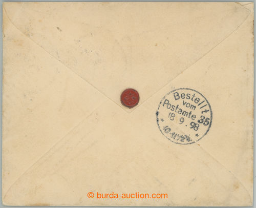 Philately. commercial letter sent from Tientsin to Germany, franked with 2 German stamps Eagle 20Pf issue 1890, Mi.V48, from that 1x lower coupon, CDS TIENTSIN EMPEROR DEUTSCHE POST AGENTUR 8/8 98, on reverse arrival postmark