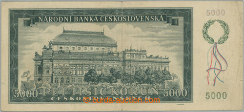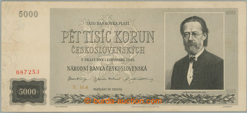 Banknotes. Ba.79, 5000Kcs 1945, set 04A, rarer Slovak perf S; very nice, light hinged manipulace (Image) (Image2)