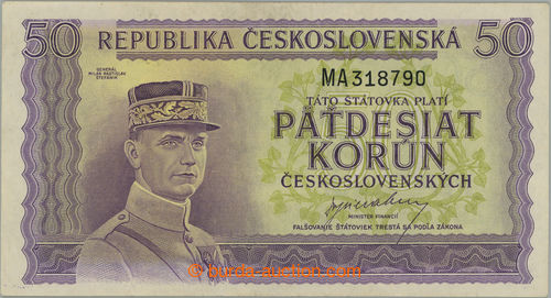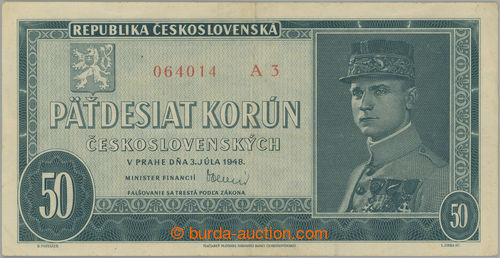 Banknotes. Ba.81a, 50Kcs 1948, low set A3; cross folded, overall nice (Image) (Image2)