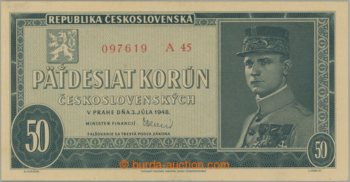 Banknotes. Ba.81b, 50Kcs 1948, set A45; only light hinged manipulace, very nice (Image) (Image2)
