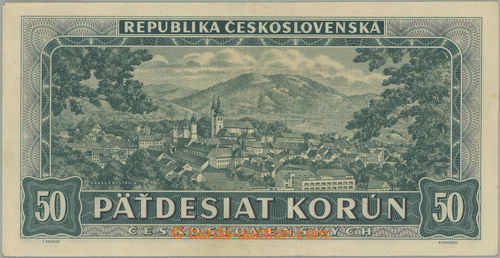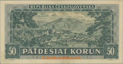 Banknotes. Ba.81b, 50Kcs 1948, set A15, perf 3 small holes vertical; only quite light hinged manipulace, very nice (Image) (Image2)