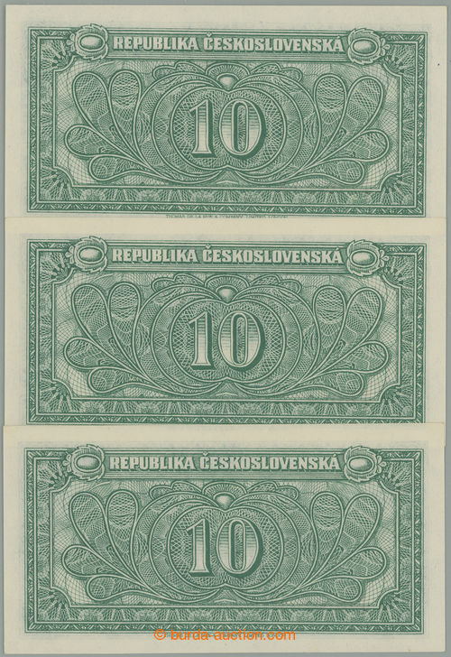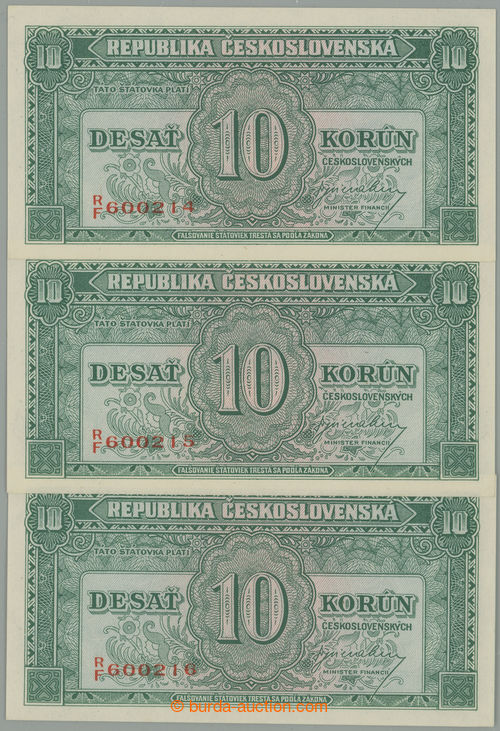 Banknotes. CISELNA POSTUPKA / Ba.71, 10Kcs b.l. (1945), set RF, comp. 3 pcs of with in sequence jdoucimi numbers; sporadically only light hinged manipulace, otherwise very fine (Image) (Image2)