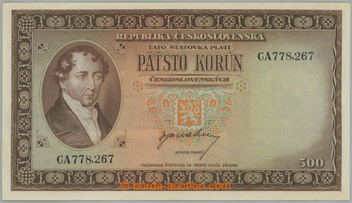 Banknotes. Ba.75, 500Kcs b.l. (1945), the first set CA, perf 3 small holes vertical; very fine (Image) (Image2)