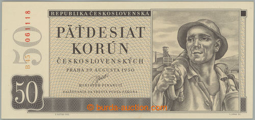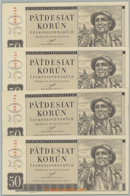 Banknotes. CISELNA POSTUPKA / Ba.85b, 50Kcs 1950, issue II., set B45, comp. 4 pcs of with in sequence jdoucimi numbers; very nice (Image)