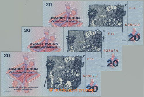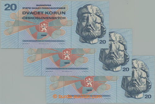 Banknotes. CISELNA POSTUPKA / Ba.100, 20Kcs 1970, set F15, comp. 3 pcs of with in sequence jdoucimi controlling numbers; very fine