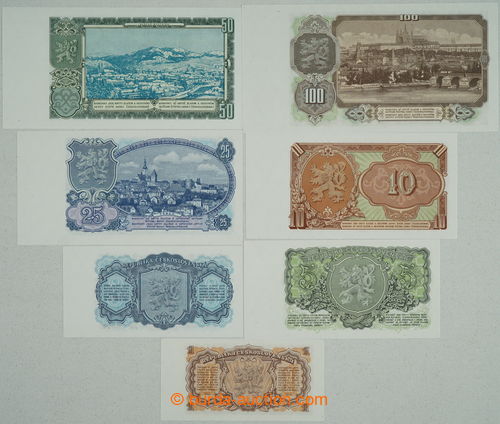 Banknotes. Ba.86-92, comp. 7 pcs of bank-notes 1 - 100Kcs 1953, complete set, various sets Goznak also STC; sporadically light hinged manipulace, otherwise very fine (Image) (Image2)