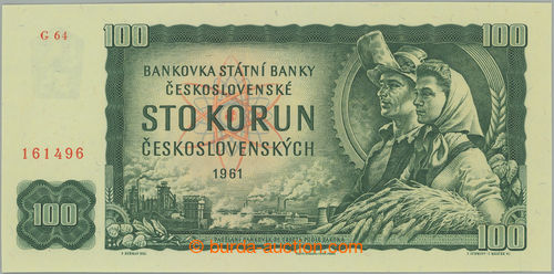 Banknotes. CISELNA POSTUPKA / Ba.98Ab1, 100Kcs 1961, issue II., set G59, comp. 5 pcs of with in sequence jdoucimi controlling numbers; only light nahnuty corner, otherwise very fine (Image) (Image2)