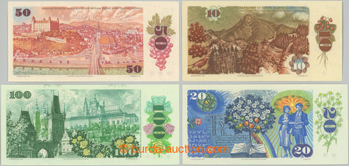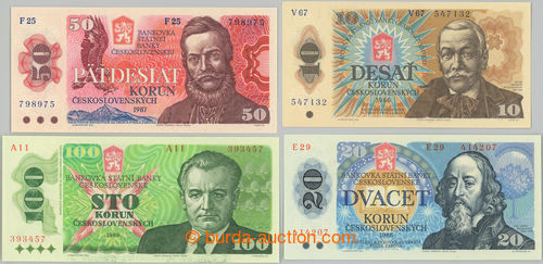 Banknotes. Ba.103-106, comp. of 4 bankovek: 10Kcs 1986, set V67 + 20Kcs 1988, set E29 + 50Kcs 1987, set F25 + 100Kcs 1989, set A11; very fine
