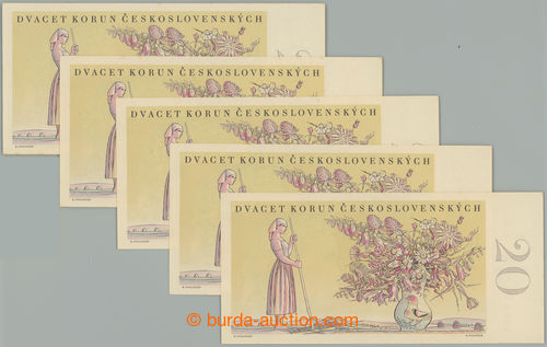 Banknotes. CISELNA POSTUPKA / Ba.83b, 20Kcs 1949, issue II., set B42, comp. 5 pcs of with in sequence jdoucimi numbers; only sporadically minimum hints manipulace (Image) (Image2)