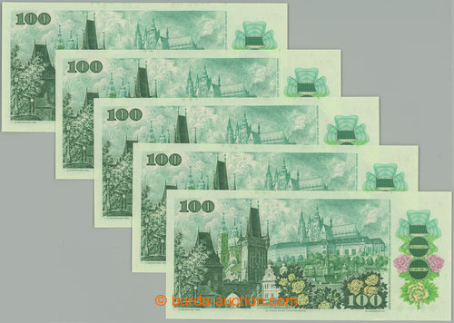 Banknotes. CISELNA POSTUPKA / Ba.106, 100Kcs 1989, set A21, comp. 5 pcs of with in sequence jdoucimi controlling numbers; quite small prohnuti paper, otherwise very fine (Image) (Image2)
