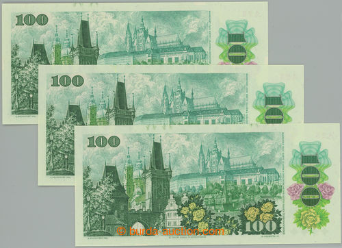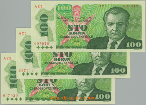 Banknotes. CISELNA POSTUPKA / Ba.106, 100Kcs 1989, set A25, comp. 3 pcs of with in sequence jdoucimi controlling numbers; quite small prohnuti paper, otherwise very fine (Image) (Image2)