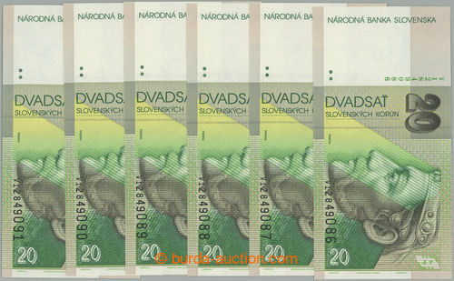 Banknotes. CISELNA POSTUPKA / Ba.SK40, 20Sk 2006, set V, comp. 6 pcs of with in sequence jdoucimi controlling numbers; very fine (Image)