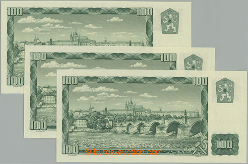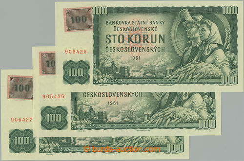 Banknotes. CISELNA POSTUPKA / Ba.CZ1Ab1, 100Kcs 1961 with mounted revenue, issue II., set G75, comp. 3 pcs of with in sequence jdoucimi controlling numbers; very fine (Image) (Image2)