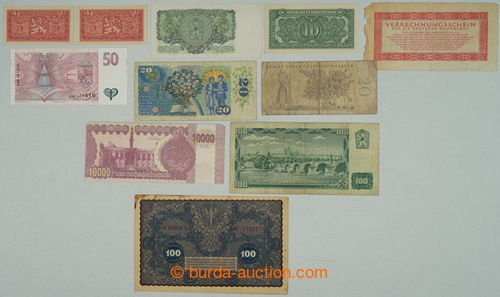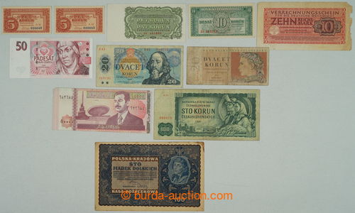 Banknotes. SELECTION of / 11 pcs of mainly Czechosl. bankovek: i.a. 2x 5Kcs 1949 and 10Kcs 1950 (all quality 0), iracky 10.000 dinar with S. Husajnem and other; various quality (Image) (Image2)
