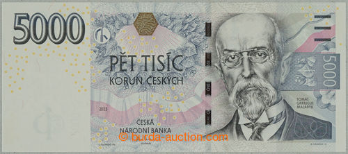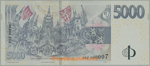 Banknotes. Ba.CZ33, 5000CZK 2023, set 90Z, exceptional low control number 000007(!); only small prohnuti paper, otherwise very fine, rare usage like that low numbers! (Image) (Image2)