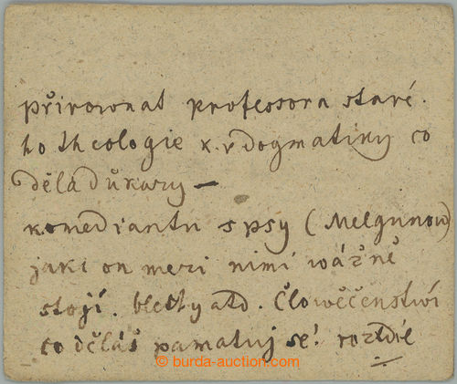 Autographs. BOROVSKY Charles Havlicek (1821-1856), Czech poet, journalist, writer and politician, handwritten 11-radkovy text on card two-sided; very nice good condition and very rare, rukopisy Borovsky practically don't occur in