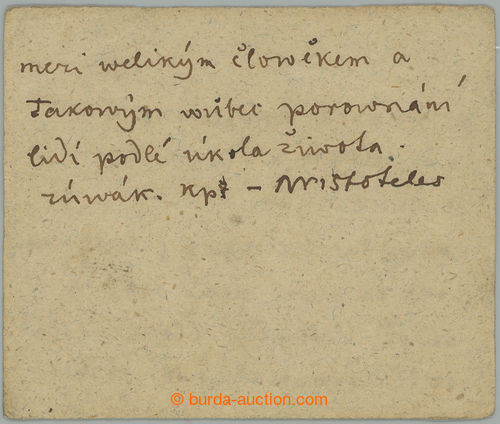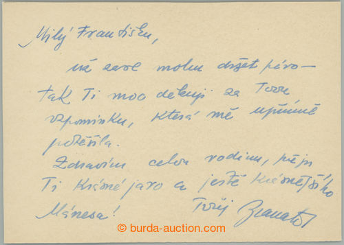 Autographs. BRANALD Adolf (1910-2008), important Czech writer, i.a. author romanu Vizita; handwritten text with signature on card (Image)