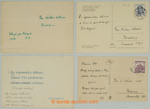 Autographs. BEZRUC Peter (1867-1958), one's own name Vladimir Vasek, important Czech poet, comp. of 4 handwritten written Ppc; in good condition condition, sought (Image)