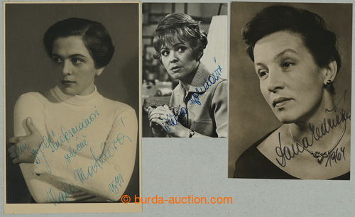 Autographs. Dana Medricka / Vlasta Matulova / Jirina Bohdalova / comp. of 2 photos and 1 photo postcard with signatures known herecek; very fine