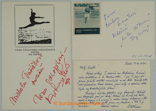 Autographs. ATHLETICS / Vera Caslavska / Alois Hudec / Milena Hubnerova; selection of signatures and rukopisu important Czechoslovak sportsmen + SWIMMING (collection cut-squares with signatures Czechosl. plavcu) (Image) (Image2)