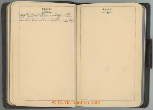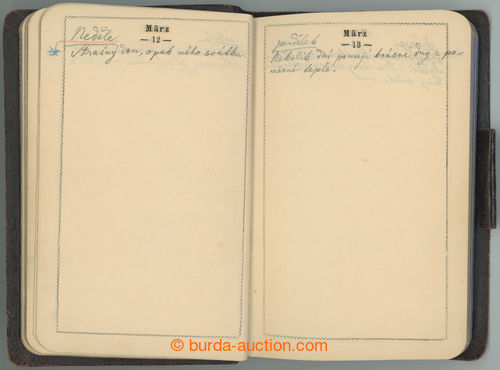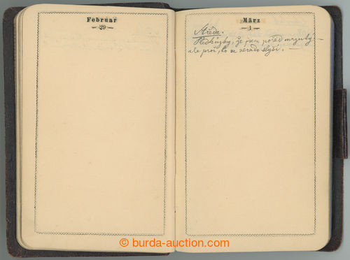Autographs. SMETANA Frederic (1824-1884), one from best known musical skladatelu all period, personal diar format ca. 15x10cm, containing 182 sheets, on/for almost 100 sides various handwritten zapisky and notice, often rather