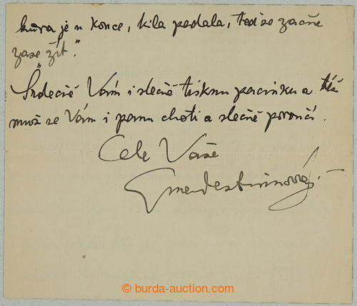 Autographs. DESTINNOVA Emma (1878-1930) (Emilie Kittlova), svetoznama Czech opera singer, handwritten text 3-strankoveho letter written in Strazi 10.XI.1928 with signature; good condition and sought (Image) (Image2)