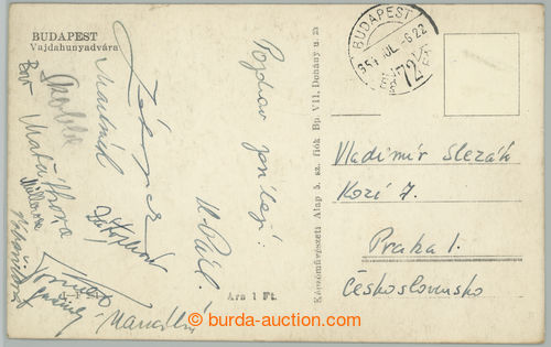 Autographs. ATHLETICS / ZATOPEK / postcard sent from atletickych plants/races in Budapest, handwritten signatures atletu: Emil Zatopek, Dana Zatopkova, M. Mullerova, J. Skobla and other; nice good condition (Image) (Image2)