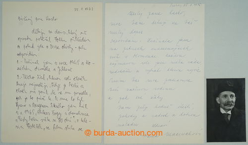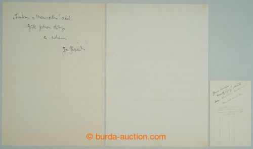 Autographs. ACTORS / selection of rukopisu with signs: Francis KOVARIK (1886-1884, text on the reverse side portrait photo) + Hana MACIUCHOVA (1945-2021, 1-strankovy letter) + John SKOPECEK (1925-2020, 1-strankovy letter); nice