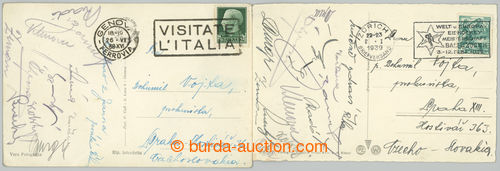 Autographs. FOOTBALL / AC SPARTA PRAGUE / 2 postcard sent to Czechoslovakia with signatures of players Sparta from match Mitropa Cup against FC Janov 1938, other from Switzerland, i.a. Rado, Burgr, Zeman, Riha etc..; good