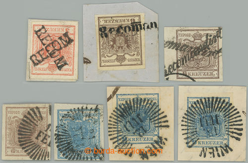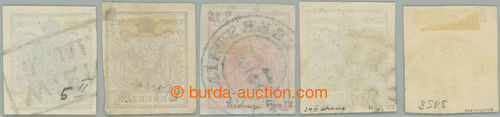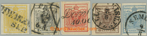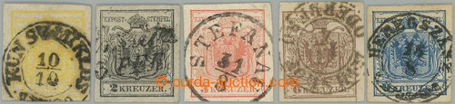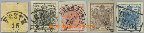 Philately. ANK.1-5, Coat of arms 1Kr-5Kr, various types and papers, 3 Kreuzer Seidenpapier, and underlaid middle, 6 Kreuzer with plate variety 42, 9 Kreuzer underlaid middle; very fine, c.v.. 440EUR (Image) (Image2)