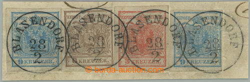 Philately. Ferch.3HP Ia + 4HP Ia + 2x HP 5I, Coat of arms 3 Kreuzer + 6 Kreuzer +2x 9 Kreuzer on small cut-square with cancel. BLASENDORF, all type I on hand-made paper; very fine, very fine multicolor franking! (Image) (Image2)
