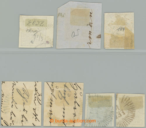 Philately. selection fo 4 small cut-squares and 3 stamps, 1x 3 Kreuzer, 3x 6 Kreuzer and 3x 9 Kreuzer, various more interesting cancel., also 1x 9 Kreuzer underlaid middle, 1x marginal etc..; very fine (Image) (Image2)
