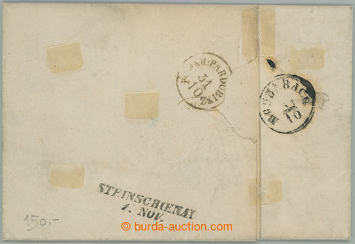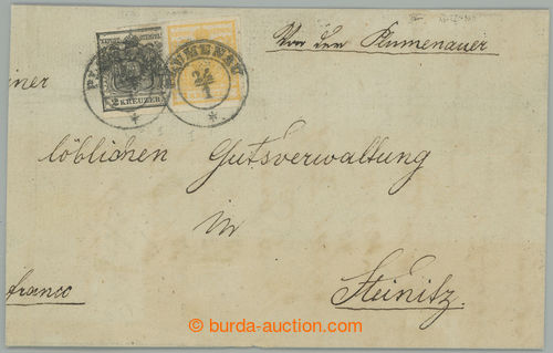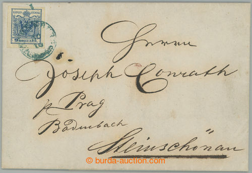 Philately. letter to Kamenicky Senov with Ferch.5IIIb, Coat of arms 9 Kreuzer, type IIIa, with BLUE cancellation RICHENBURG (Rychmburg); very fine, ex Vorisek (Image) (Image2)