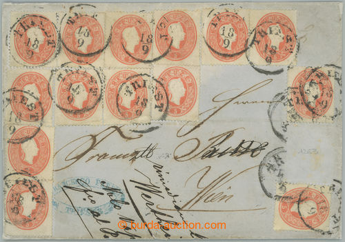 preserved only 1 stamp 5 Kreuzer, cancel. CHRUDIM 28/1 and on reverse arrival NEU SANDCZ; overall very fine, extraordinary franking, cat. Ferchenbauer min. 3.500EUR, ex Vorisek (Image) (Image2)