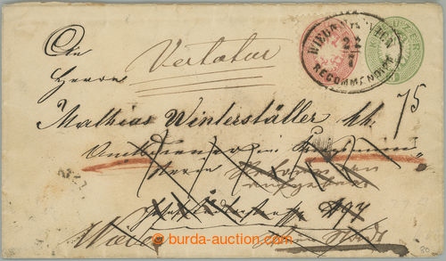 Philately. postal stationery cover 1863 Eagle 3 Kreuzer + 5 Kreuzer 1864 as local Reg with cancel. WIEDEN IN WIEN RECOMMANDIRT 22/7; perfect condition, redirected; very interesting, c.v.. 850EUR (Image) (Image2)