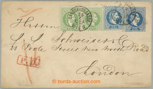 Philately. postal stationery cover Franz Joseph I. 10Kr blue from Vienna to London, uprated with stamp 3+3+10Kr rough print; very fine and rare franking, cat. min. 2.500EUR (Image) (Image2)