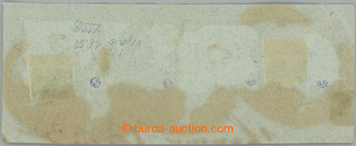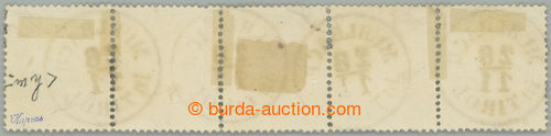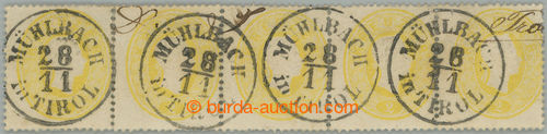 Philately. Ferch.18, Franz Joseph I. 2 Kreuzer yellow, horizontal strip of 5 with CDS MUHLBACH 28/11; very fine, mark Kapras, c.v.. 600EUR