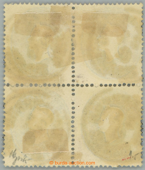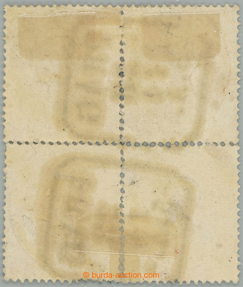 Philately. Ferch.18, Franz Joseph I. 2 Kreuzer yellow, block of four with CDS PRAG 28/11; minor perforation faults,, c.v.. 1.800EUR, rare