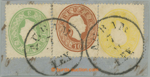 Philately. MIXED FRANKING / small cut square with 3 Kreuzer 1863 and 2+10Kr 1863/1864, CDS STUHLWEISENBURG; very fine, cat. min. 360EUR