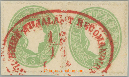 Philately. Ferch.19, Franz Joseph I. 3 Kreuzer green. 2 pcs of on small cut-square with red cancel. WIEN RECOMMANDIRT; very fine, c.v.. 350EUR+