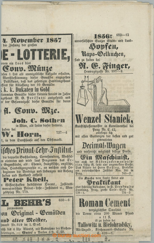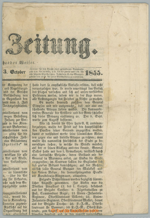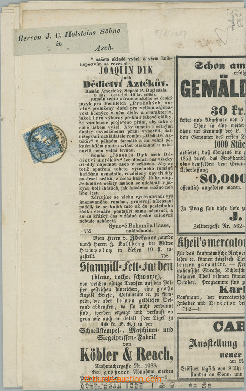 Philately. ANK.6IIIb, Blue Mercury, type IIIb, with decorative cancel. ASCH 11/8 on whole newspapers Tagesbote aus Bohmen; wide margins, extraordinary quality, lower margin 3mm, exp. by Ferchenbauer., c.v.. 400EUR++ (Image) (Image2)