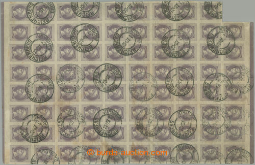 Philately. ANK.42III, Mercure 1 Kr type III 79-blok with margin and 5 complete letters of wmk; signs of age, however rare, cat. min. 525EUR