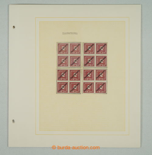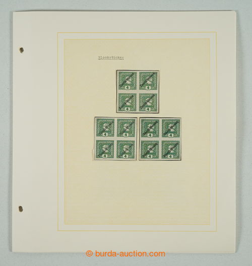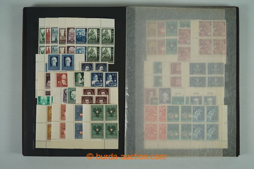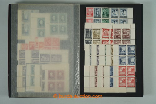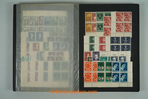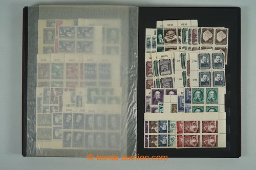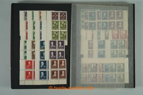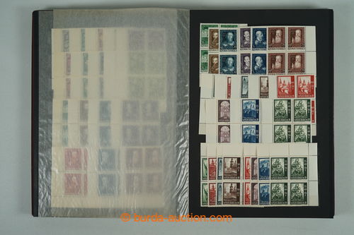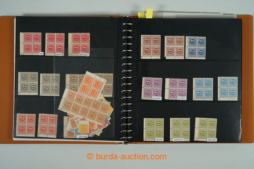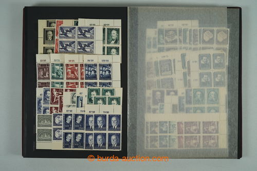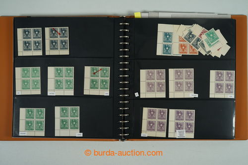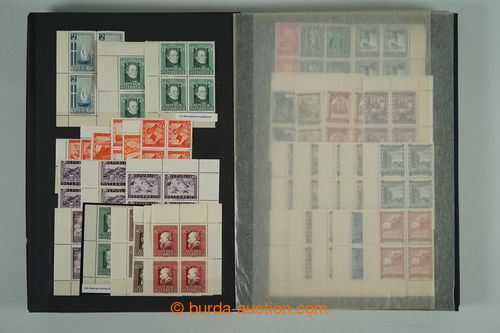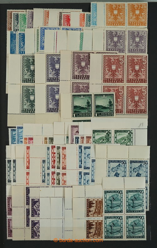 Philately. [COLLECTIONS] BLOCK OF FOUR / incomplete collection of corner blk-of-4 from postwar period, contains i.a. Carinthia Mi.964-966, supplemented with specialisation of issues Coat of arms 1945, Landscape 1945, Costumes