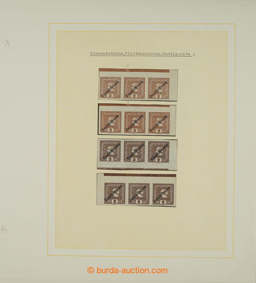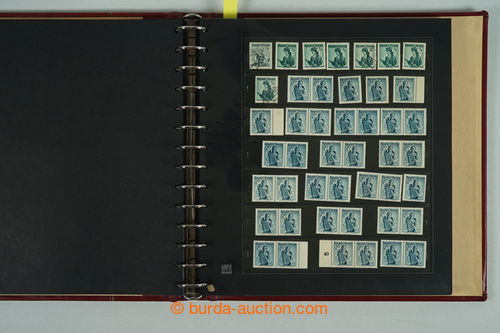 Philately. [COLLECTIONS] ANK.247-251, Mercure 2H - 30H, specialized collection on 24 pages, strips, blocks of four, colors, marginal ledge, plate numbers; very fine selection incl. better items as block of four 2H HOHLDRUCK, cat.